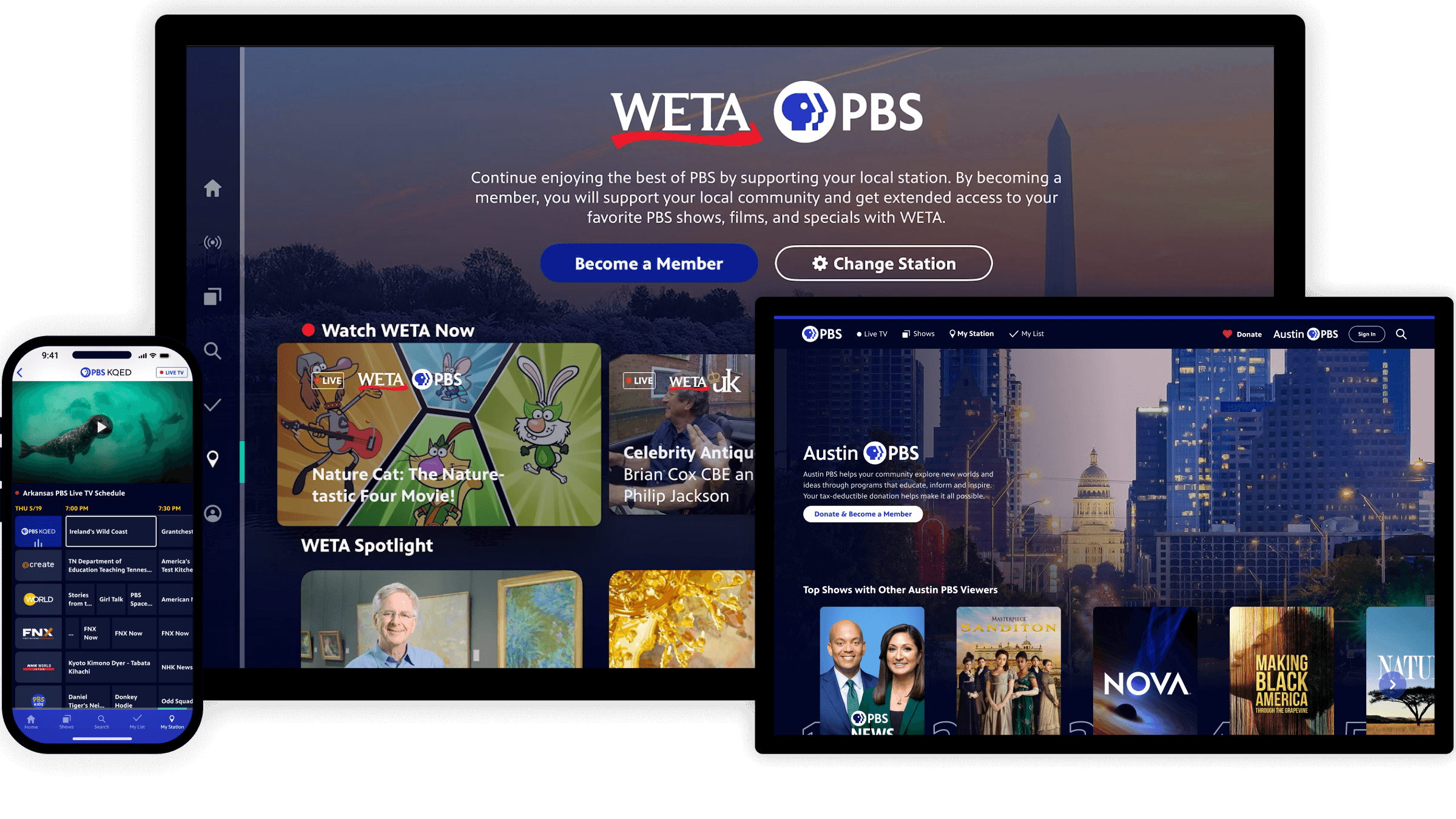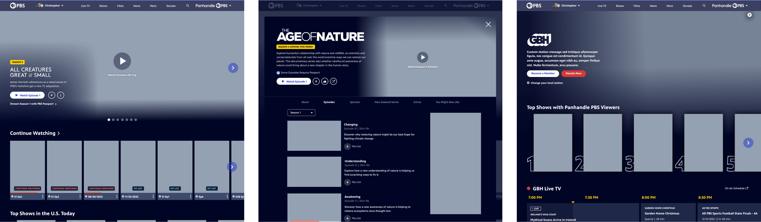 In addition to this change, I also streamlined the navigation to bump the popular Live TV up in prominence and to put more emphasis on “Donate,” including a heart to reinforce that donating to your local station is something you can feel good about!